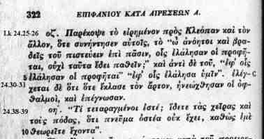 Luke 24:25-26 "falsifed what Christ said to Cleopas" - had "what I said to you" in place of "what the prophets have spoken".