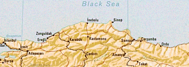Dan: about 100 miles south east of Sinope is the ancient capital of the kingdom of Pontus, a city today called Amasya. It was the birthplace of Strabo, Greek geographer of about 63 B.C. About 20 miles south of Amasya is the town of Zile, where, in 47 B.C. Caesar defeated Pharnaces, King of Pontus, and coined his famous phrase, "Veni, vidi, vici"- "I came, I saw, I conquered." (Hmm, he must have seen a very fair land indeed!)